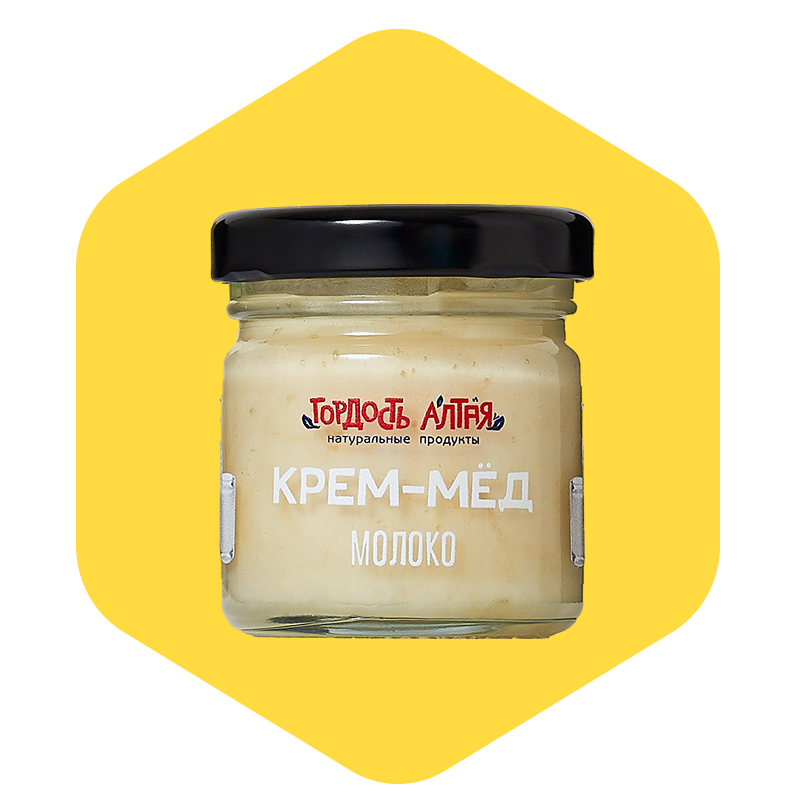 Крем-мёд с молоком — это натуральный десерт с мягким сливочным вкусом, приготовленный на основе цветочного алтайского мёда с добавлением сухого молока. Благодаря технологии холодного взбивания, мёд приобретает однородную, плотную, но нежную текстуру, которая легко намазывается, не течёт и долго сохраняет форму. Сухое молоко придаёт продукту характерные сливочные нотки и делает вкус более мягким, округлым и деликатным.